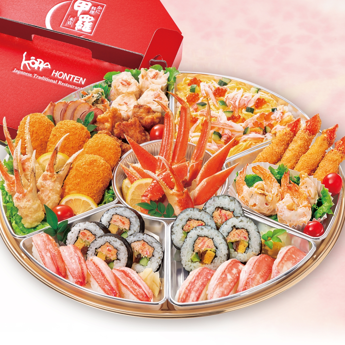 甲羅本店の厳選一品を詰め込んだ「甲羅オードブル」と、春限定「ちらし寿司」をお持ち帰りでお楽しみいただけます。
